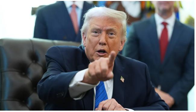 美国总统川普在白宫办公室回应媒体提问。(美联社)目录