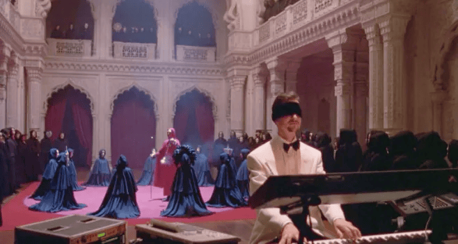 而后因为一个电话他离开了家,之后从朋友那知道了一个上流社会的神秘蒙面舞会:所有人戴着面具,穿着礼服,到处都是性感美女。