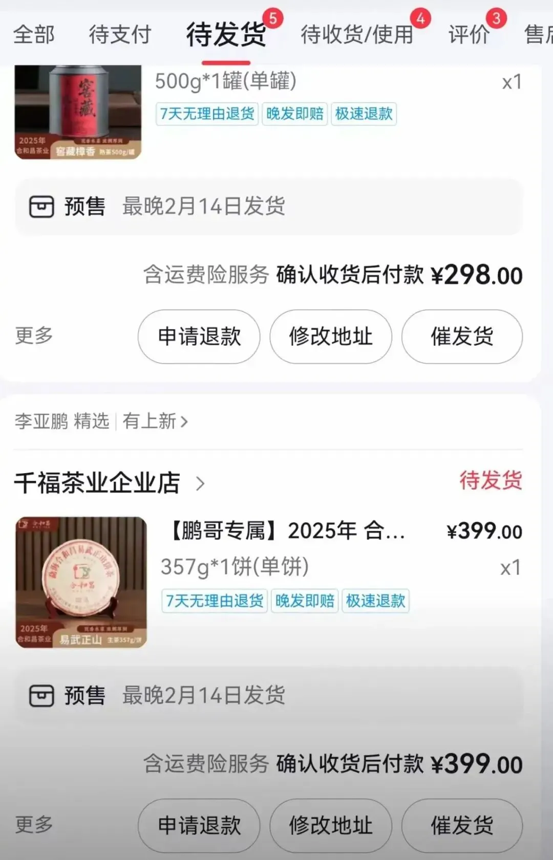 普洱茶这幺小众的品类能卖到1.6亿,难怪网友说:“年前李亚鹏要是每天都肯直播,别说普洱茶,就是整个茶圈的库存也能给清了。”