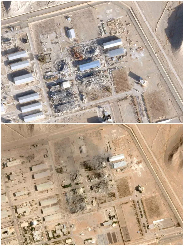 卫星影像显示,曾在去年6月遭美军空袭的伊斯法罕核设施(下),自去年12月以来似乎出现若干修复迹象,包括受损建物已加盖屋顶(上),但未见其他重建工程。(路透)