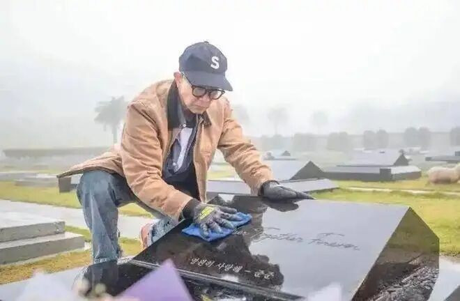 节目组拍到他独自一人驾车,后备箱里装着折叠椅、贡品,还有一个存满大S生前影像的 iPad,到了墓园就仔细清扫墓碑,然后行韩国传统的跪拜礼,静静坐上好几个小时,要么看着照片发呆,要么对着墓碑轻声说话。