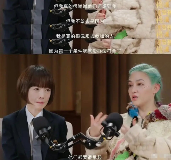 当然偶尔也会开开玩笑,譬如说起这几年接到“浪姐”节目组的邀请,她一直都是拒绝的,理由是自己实在没办法早起。