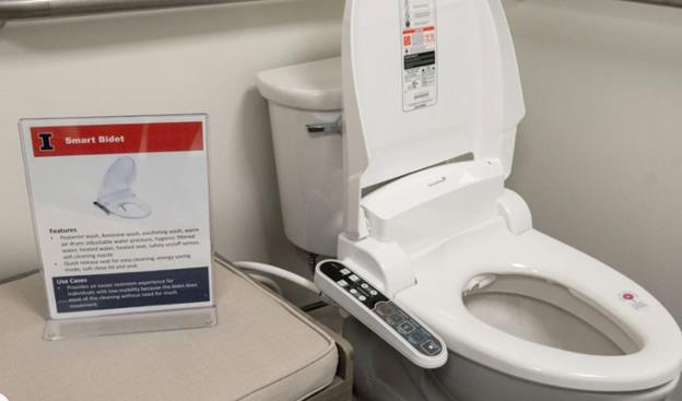 伊利诺州一间长照中心厕所里装设的智慧型免治马桶。 (美联社)