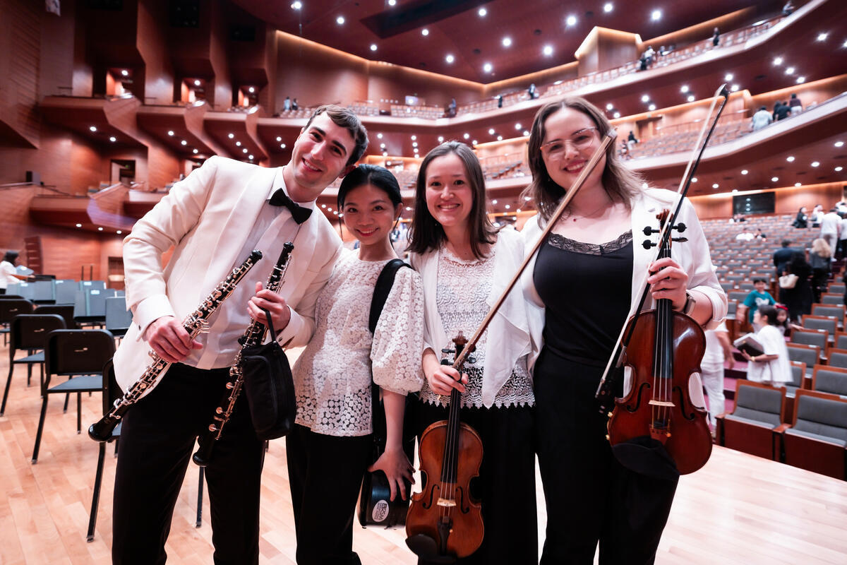 纽约爱乐乐团季中逾百场高密度、高强度的演出节奏,让黄薏蓉(I-Jung Huang,左二)形容自己有时像一名运动员。(黄薏蓉提供)