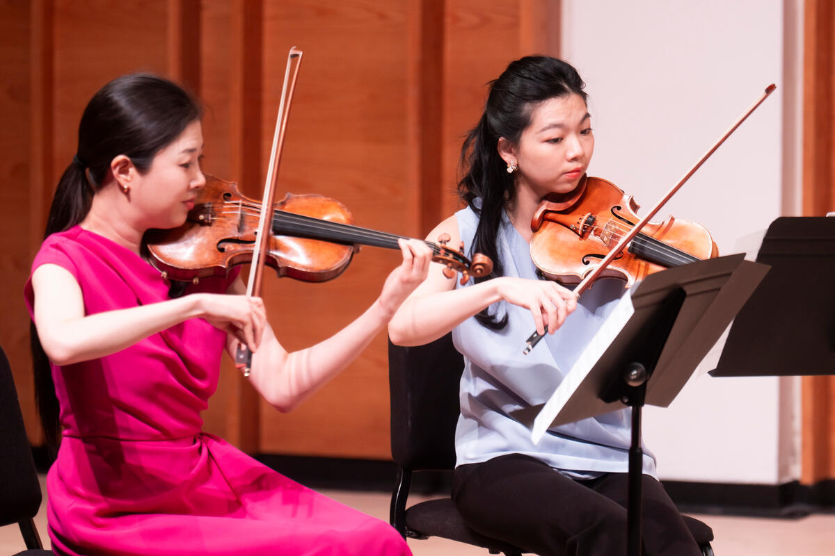 2024年,来自台湾的小提琴家黄薏蓉(右)通过考核,成为纽约爱乐乐团的终身职团员。(黄薏蓉提供)