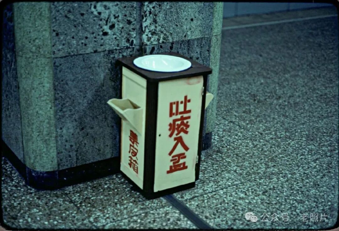 带痰盂功能的果皮箱。这在当时应该很常见的吧?
