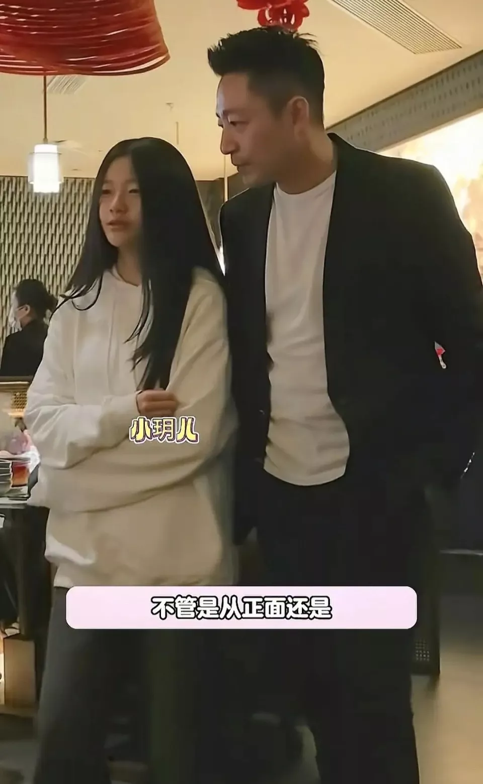 小玥儿一头长发,小眼睛单眼皮高鼻梁简直和汪小菲一模一样。小玥儿穿着白色卫衣、黑色裤子,双手抱在一起,脸上没什么表情。