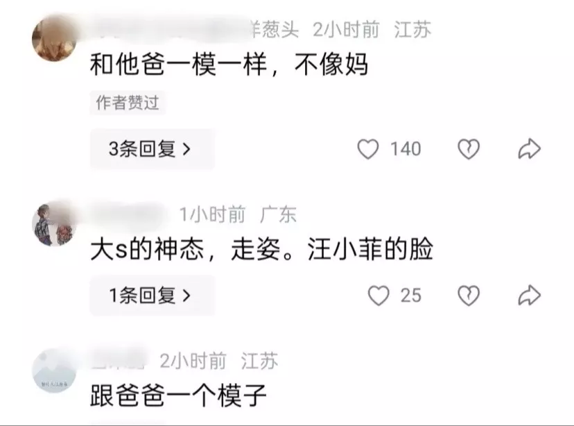 不少网友都发表评论,说小玥儿长得和爸爸一模一样,根本不像妈妈。也有网友认为,小玥儿是大S的神态,汪小菲的脸。