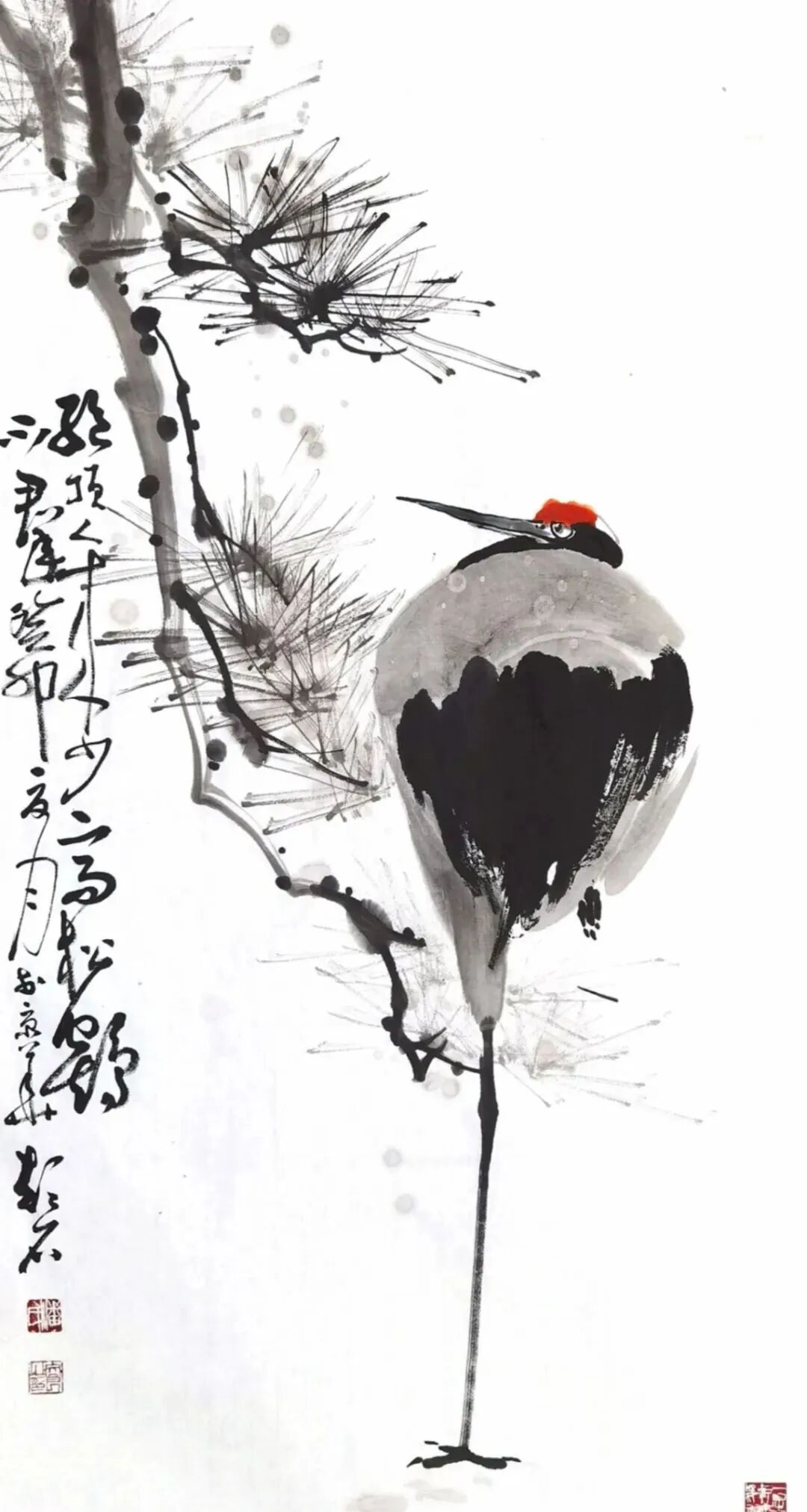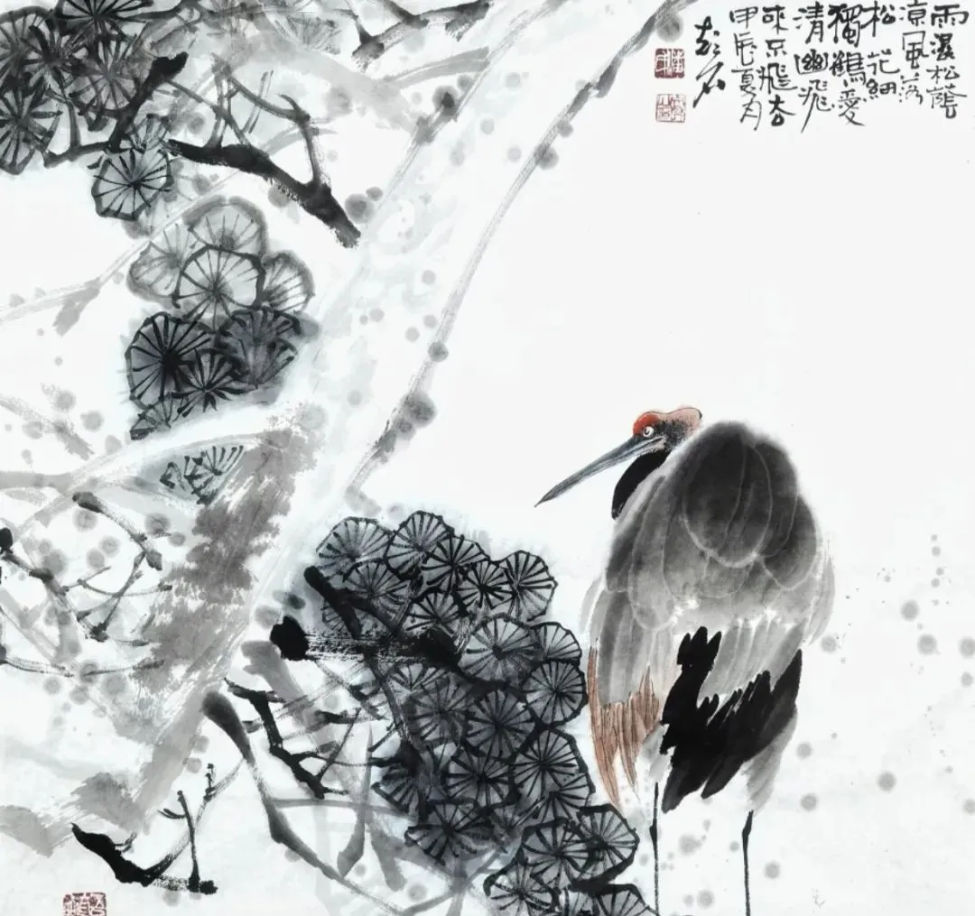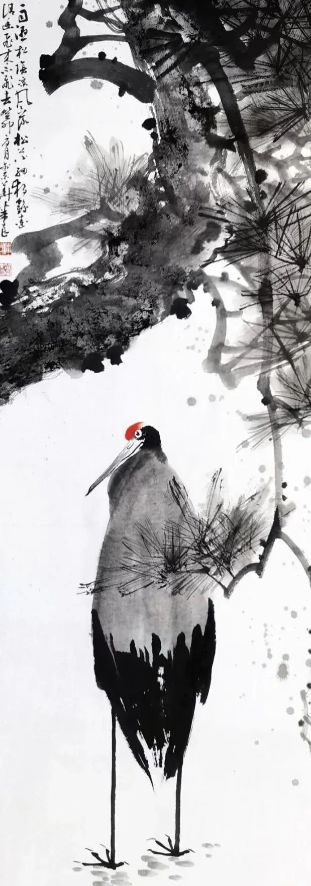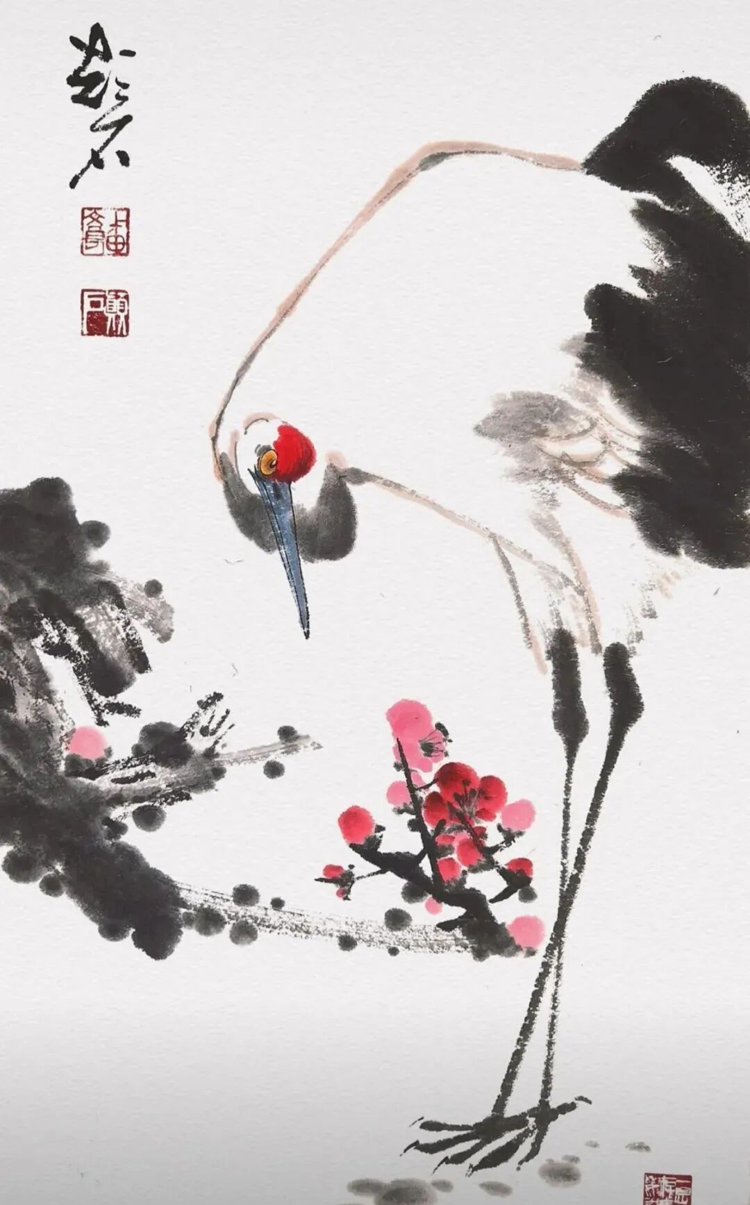 潘文良的写意仙鹤以其笔简清幽、意蕴无穷的特点,展现出了独特的艺术魅力。