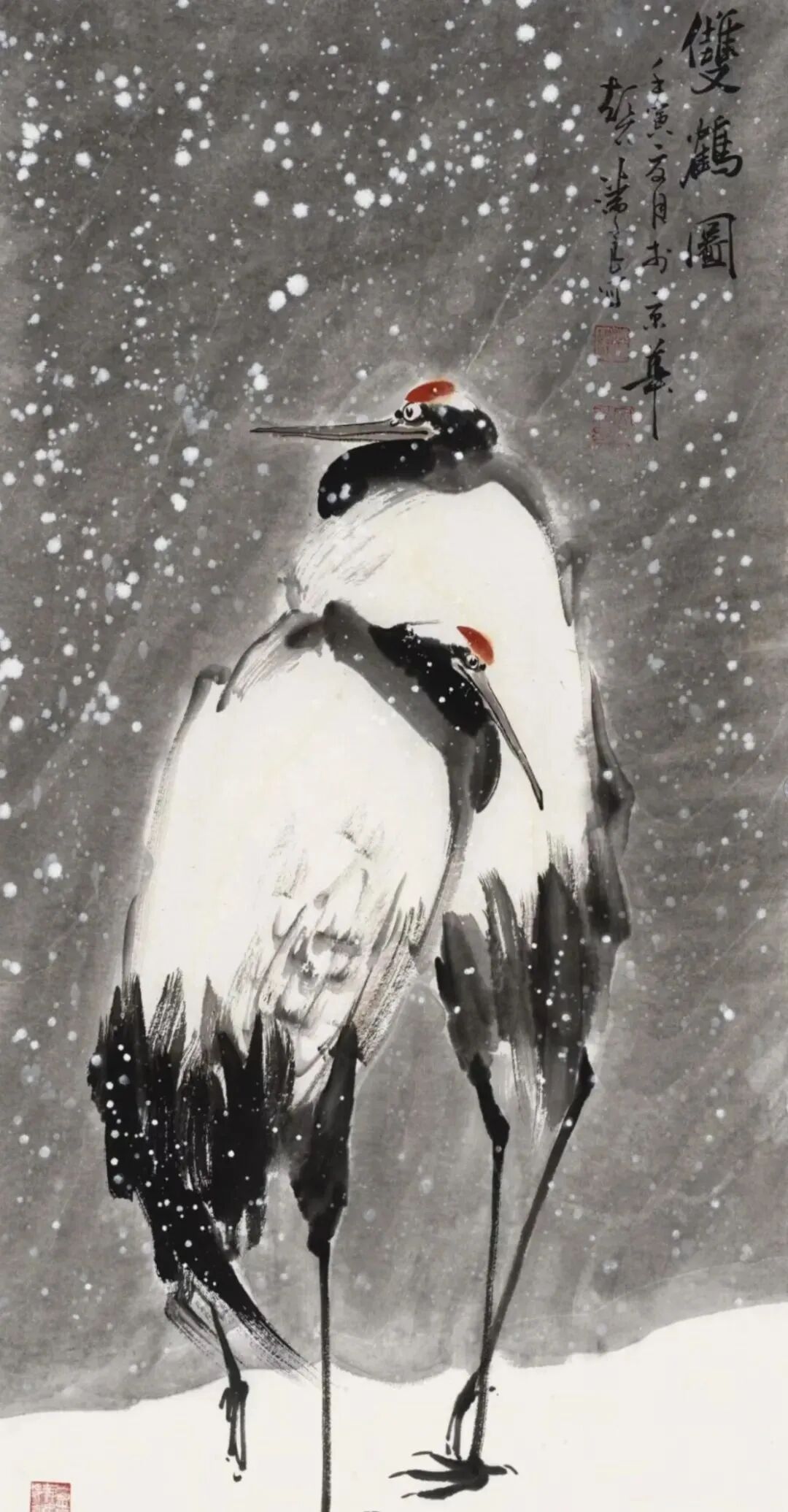 他用简洁而富有表现力的笔墨,将仙鹤的神韵与精神内涵完美地融合在一起,为观者带来了一场视觉与心灵的盛宴。