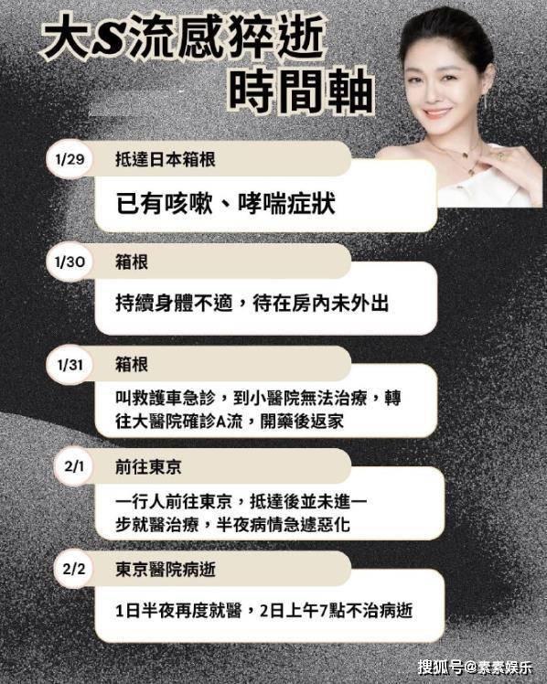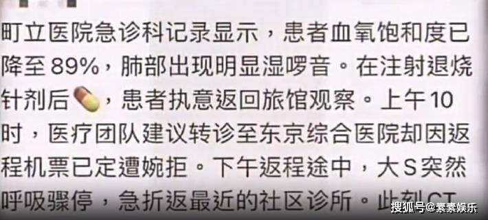 这才有了后面家人陪她一起赶往机场,准备坐飞机返回台北。但就在回家的路上,大S的病情再一次恶化,前往机场的途中心脏已经骤停。