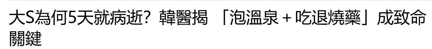 这一种内热加外热的双重伤害,也许大S在期间甚至还有吃感冒药的可能性。台媒称泡温泉也许是外因,但吃感冒药又泡温泉这就是最致命的存在。