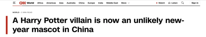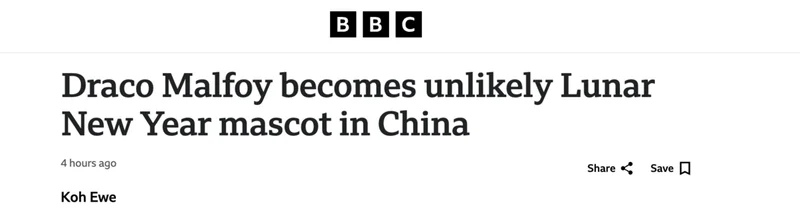 CNN、BBC和《卫报》近日接连报道,这位在原著中以傲慢、刻薄著称的霍格沃茨“金发少爷”,如今在中国却被当成了“马年吉祥物”,频频出现在春联、海报和各类节日装饰中。