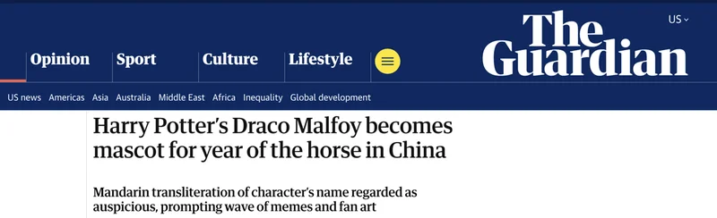 《卫报》形容,这个文字巧合让马尔福成了一个“意外应景”的形象——哪怕在原著中是反派,在马年也显得格外顺耳。