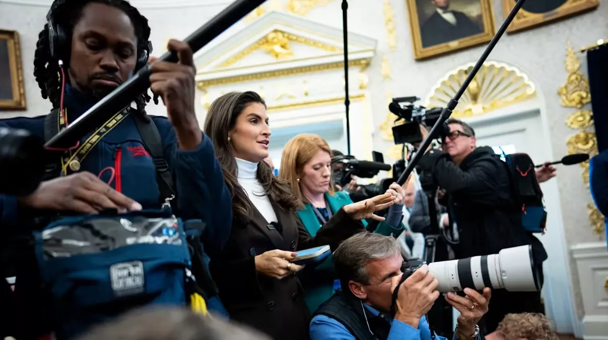 《纽约时报》报道,特朗普今天(4日)在白宫椭圆形办公室举行记者会。