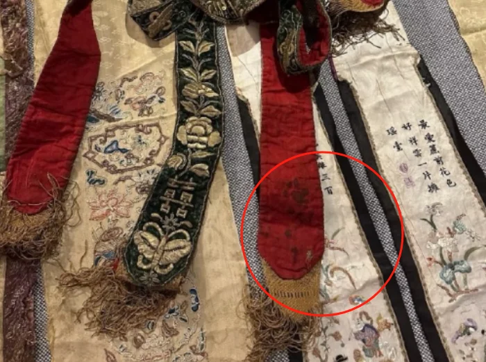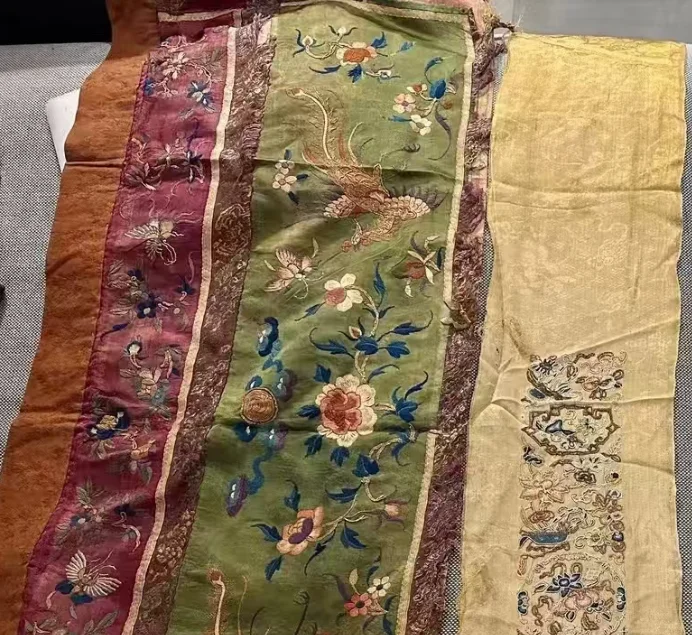 某天,男友拿出先人1900年间从中国带回的一些服饰残片,请她鉴赏。