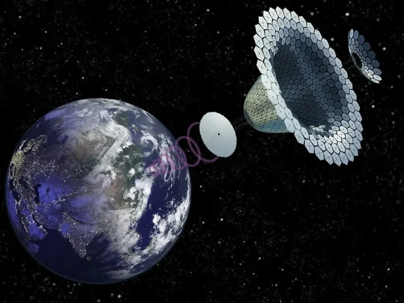 近年来卫星技术、太阳能电池和无线传输技术的进步,让这一设想越来越可能实现了。科学家的设想是,将巨型卫星发射到太空,通常是距离地面3.6万千米的地球静止轨道(GEO)上。在这里,卫星相对于地面保持静止,并且一年中99%的时间都能被阳光照射。卫星上安装的巨大太阳能电池阵列会把阳光转换为电力,然后将电能变成高频率的微波或激光束,传送到地面接收站。地面接收站通过整流天线(rectenna)等装置捕获微波能量,再将其转换回电能送入电网,供城市和设施使用。