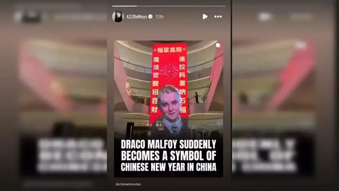 费尔顿还配文称,自己的角色成了“中国新年的象征”。BBC说,他的回应让中国网友更加兴奋,不少人调侃:“马尔福本人100%搞笑。”