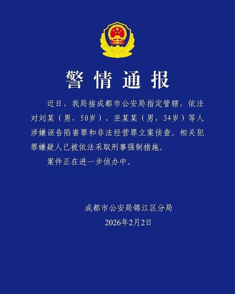 成都市公安局通报。(画面)