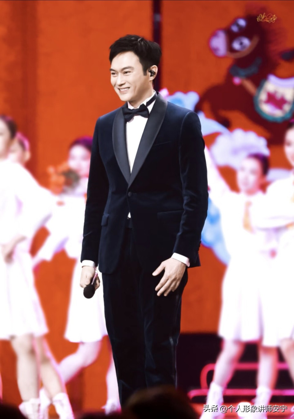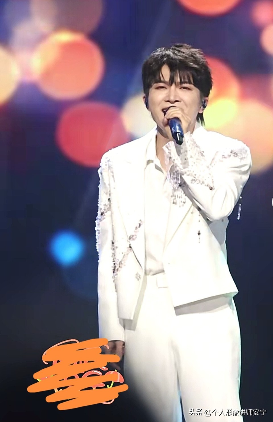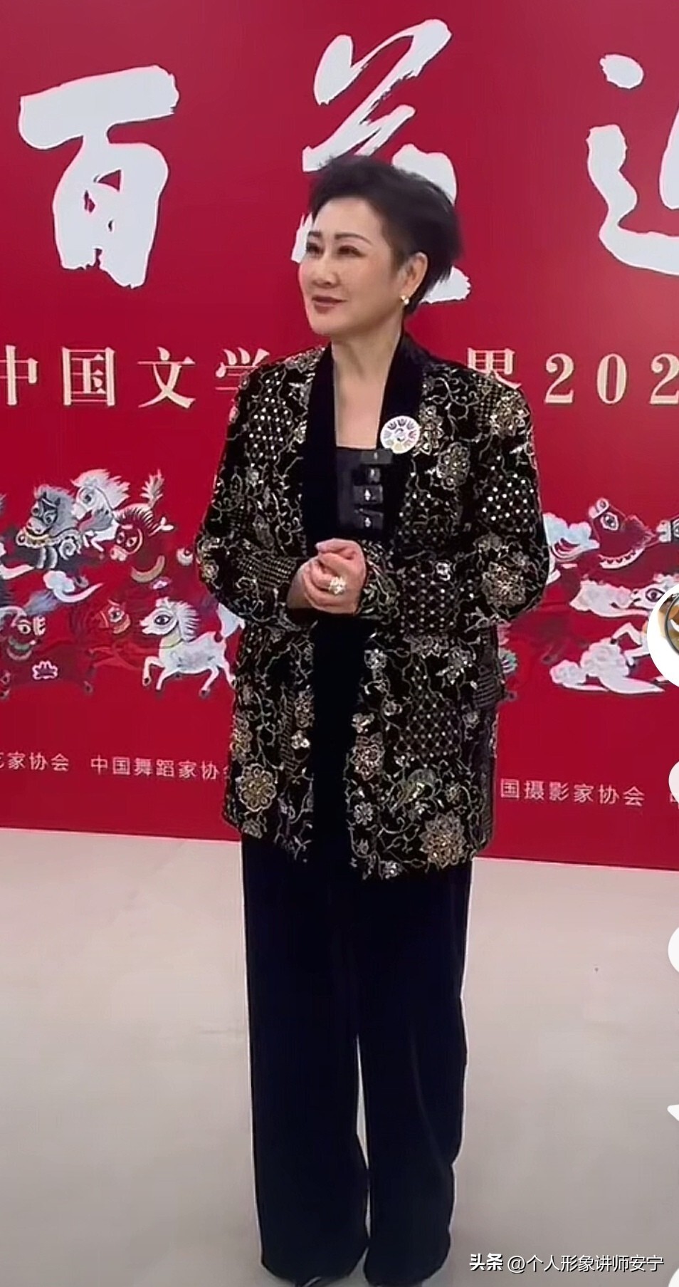 这次百花晚会虽然她穿着的是黑色底的长外套,但是上面印满了钉珠,看上去还是十分吸睛,不过整体比较精美啦。