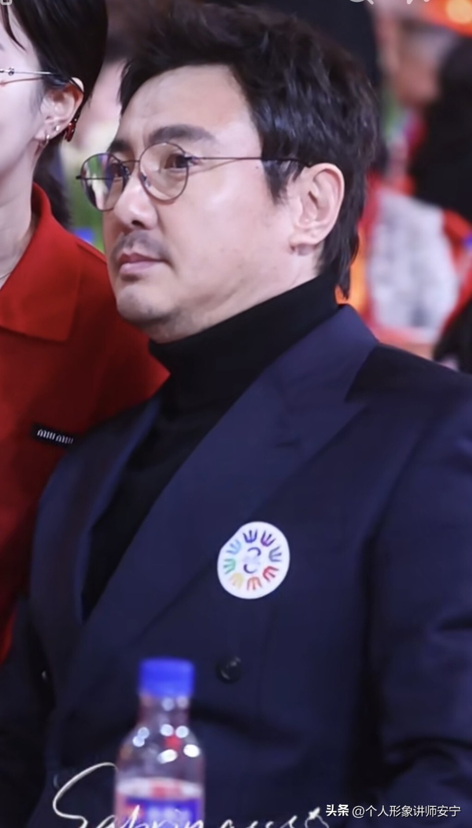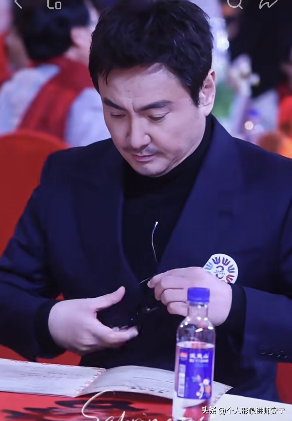 在无数人找他合影的过程中,终于把眼镜戴好。
