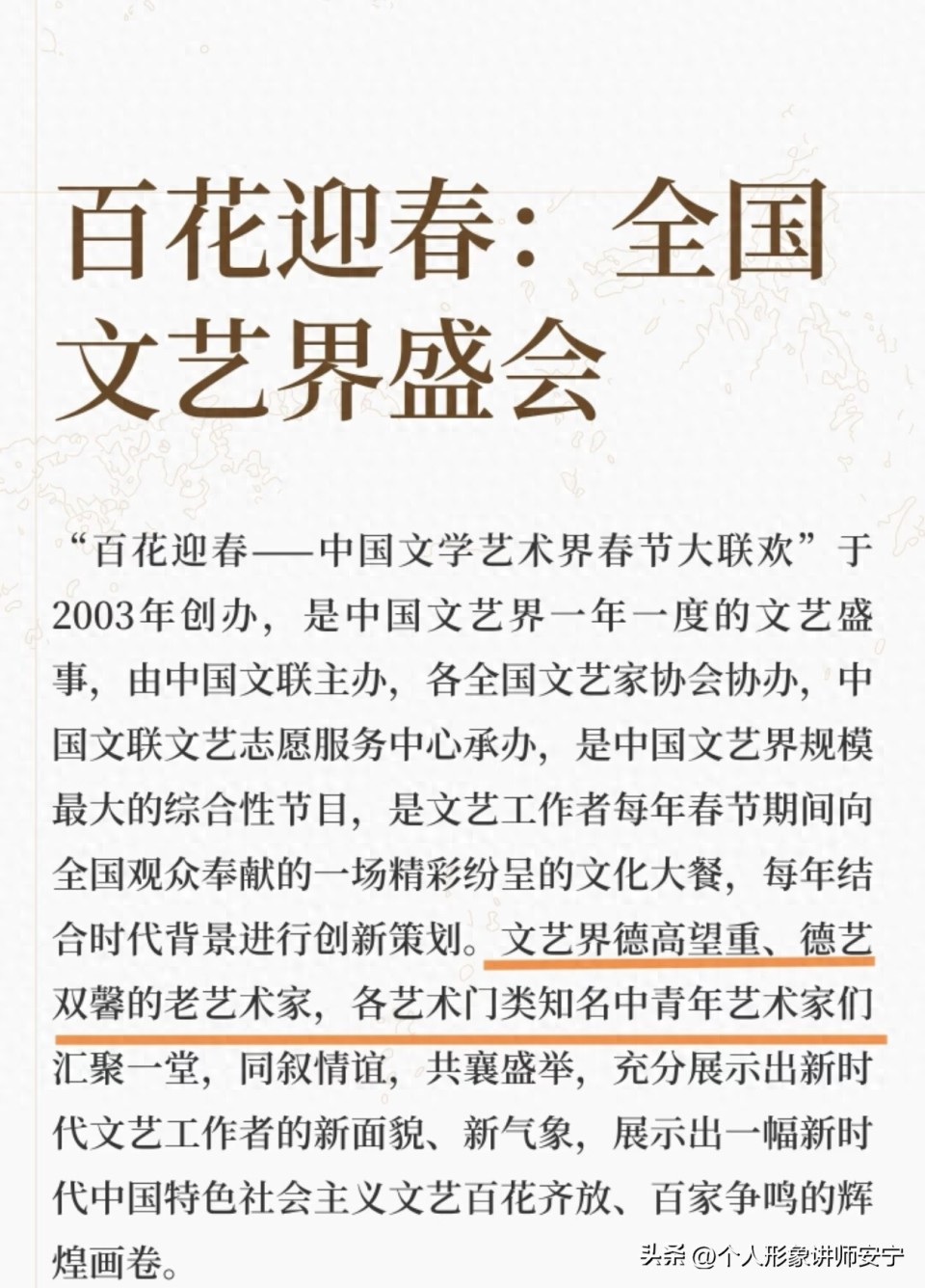 确实百花迎春晚会,会将文艺界德高望重、德艺双馨的老艺术家,都请来,大家欢聚一堂。