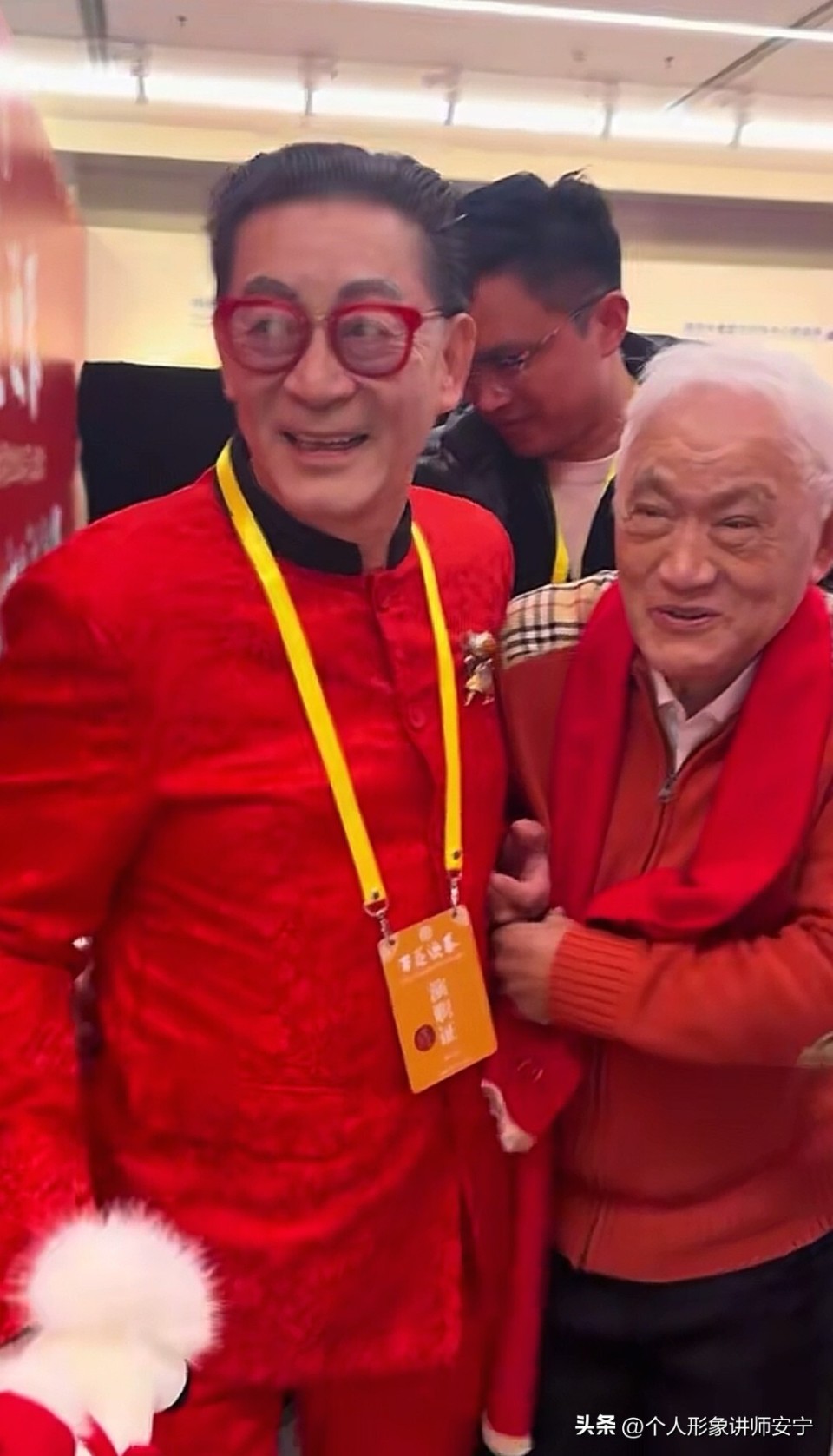 六小龄童老师与牛犇老师相互搀扶,也不知道谁扶谁,但看起来精神面貌都很好。