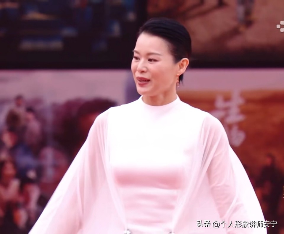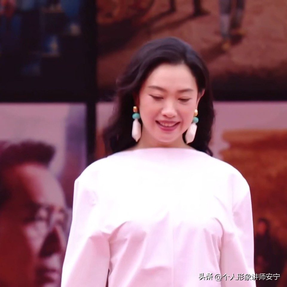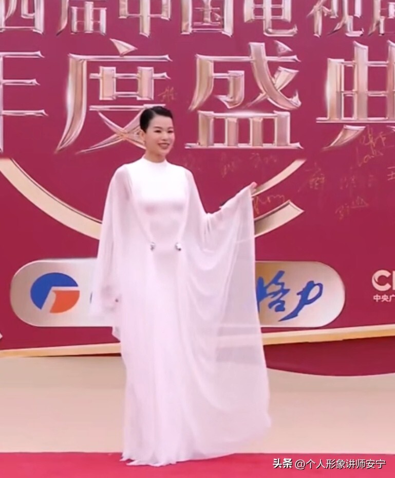 在向观众招手时,她的典雅气质,让白色的礼服,发挥出了它应有的效果。