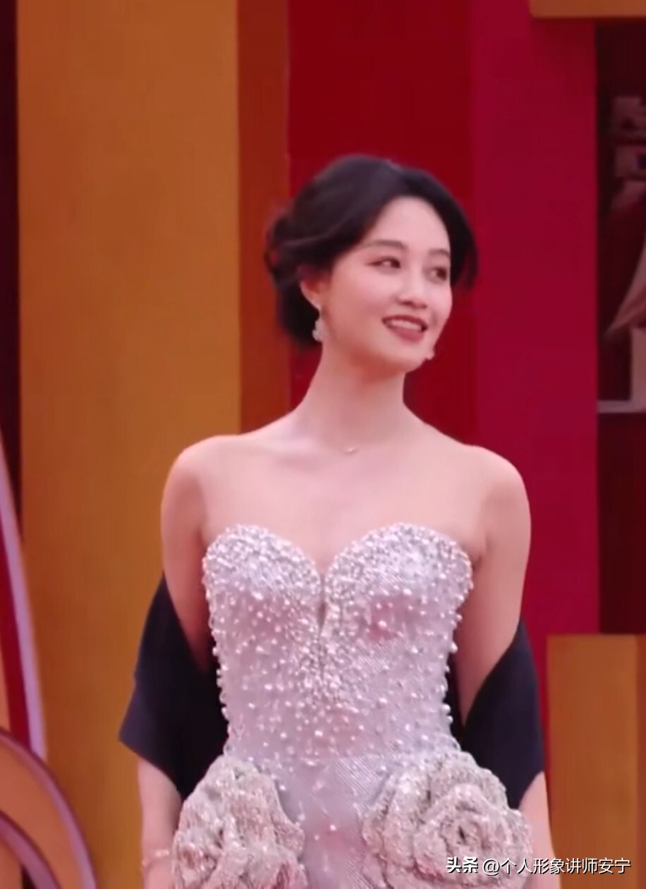 孙千这件礼服,仅看上半身,显得娇小又清纯。