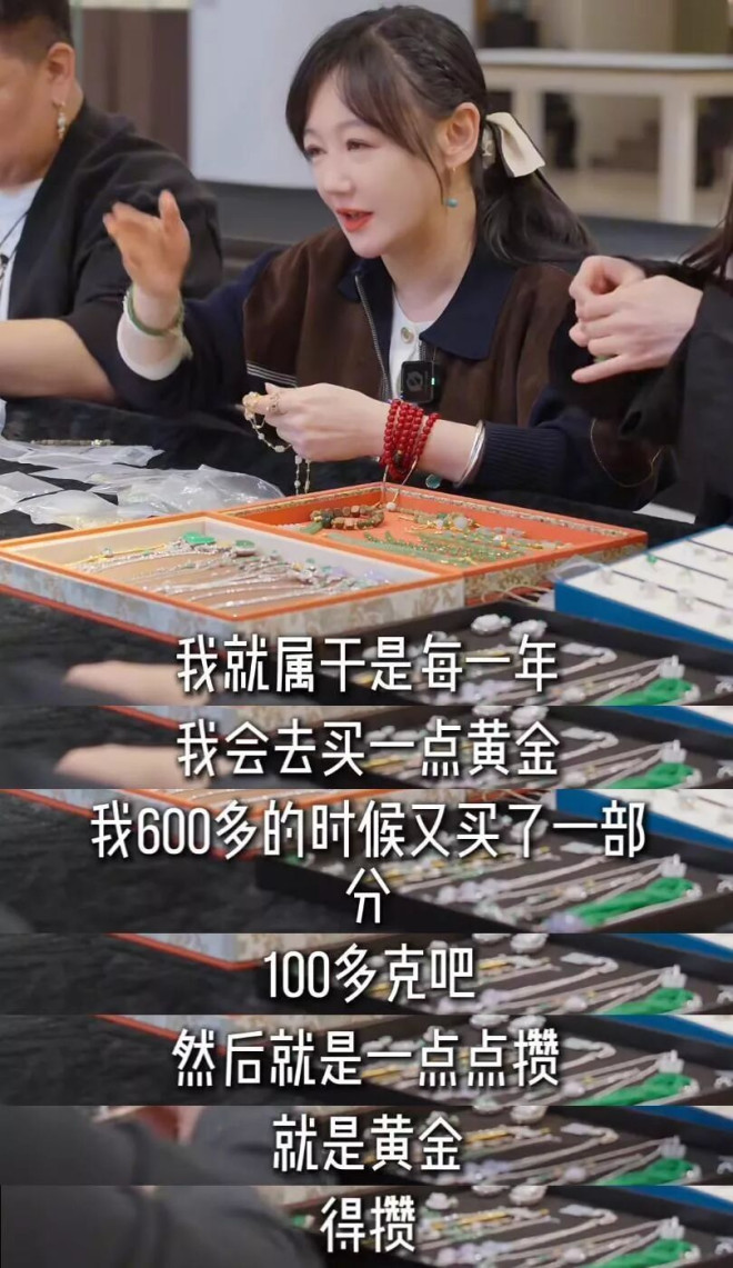 她自曝,2025年600元一克时又买了100多克,“就是一点点攒,黄金得攒。”