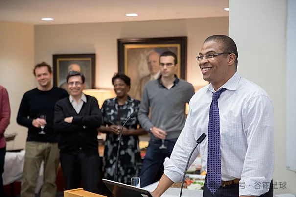 克拉克奖旨在表彰40岁以下优秀的经济学家,在哈佛另一名经济学教授罗兰・弗莱尔(右一)获奖的照片里,我们还发现了今年诺贝尔经济学奖获得者菲利普・阿吉翁(左二)
