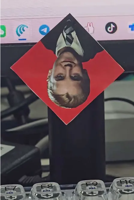 国内社交媒体上,中国网友发布的带有马尔福图片的春联“福”字。图源:外媒引自小红书