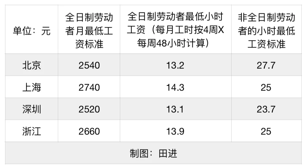 曾湘泉:当前各地针对全日制劳动者的月最低工资标准多在2000元—3000元/月之间,若换算成最低小时工资(按每月工时4周、每周48小时计算),会明显低于针对非全日制劳动者设定的小时最低工资标准。