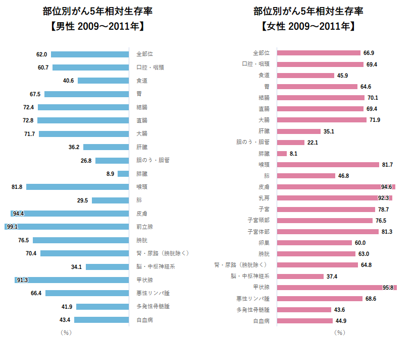 5年相对生存率: 总体约为 66.2%。