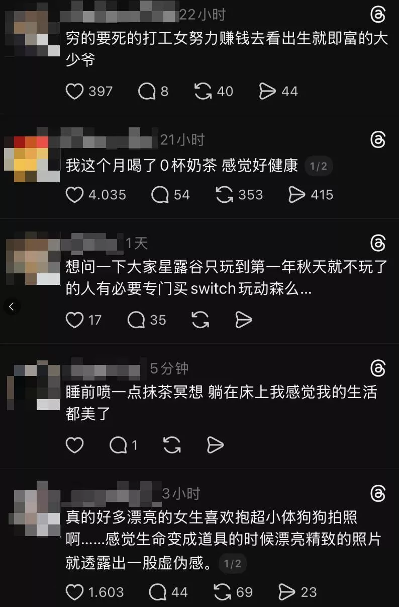 内容上给人的感觉也跟 X 不太一样,这里没有什么大新闻,也没那么多懂王在指点江山。满屏都是一些碎碎念, 关于自己的生活、对事物的看法,又或者是一些能引起讨论的话题。