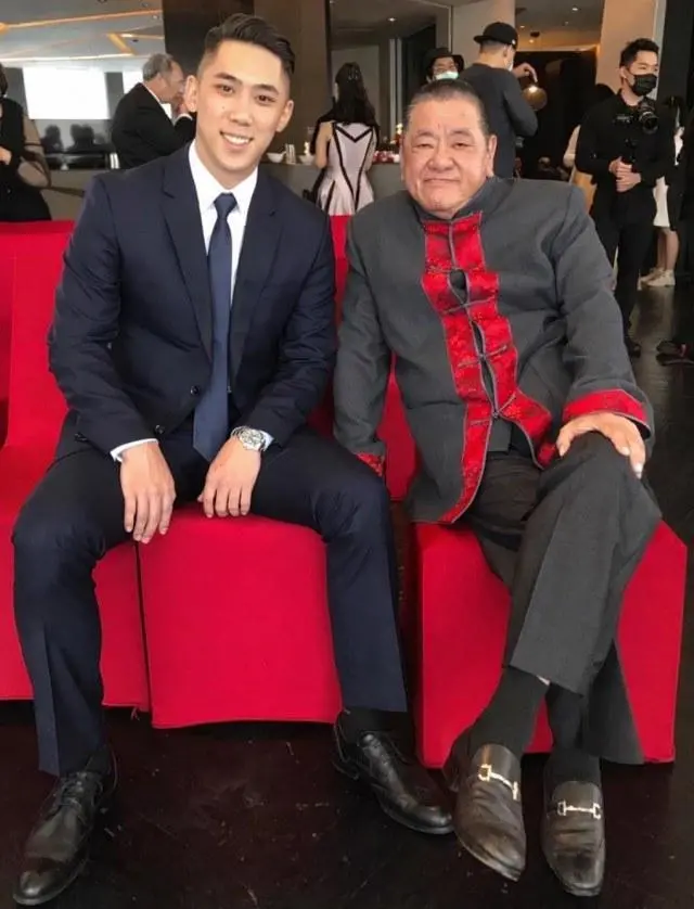 吴敦(左)与其义子、台湾民众党新北市议员陈世轩(右)