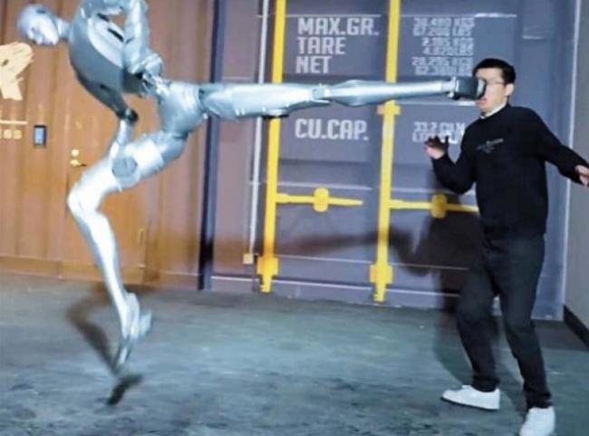宇树科技的飞踢机器人 - 中国企业宇树科技的仿人机器人“H2”在展示飞踢动作。宇树科技由36岁的王兴兴创立,他拥有中国浙江理工大学和上海大学的学士和硕士学位。