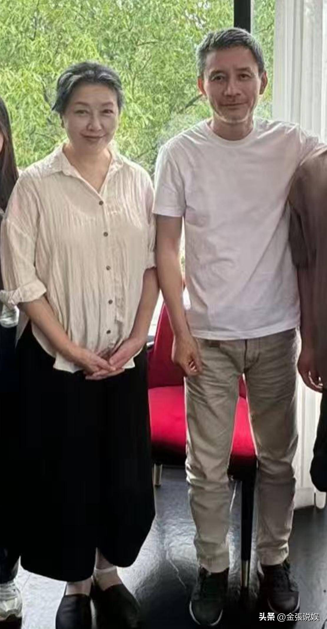 江珊虽然也有发福和白发,但整体的气质状态明显比丈夫好很多,保养得也更年轻一些。