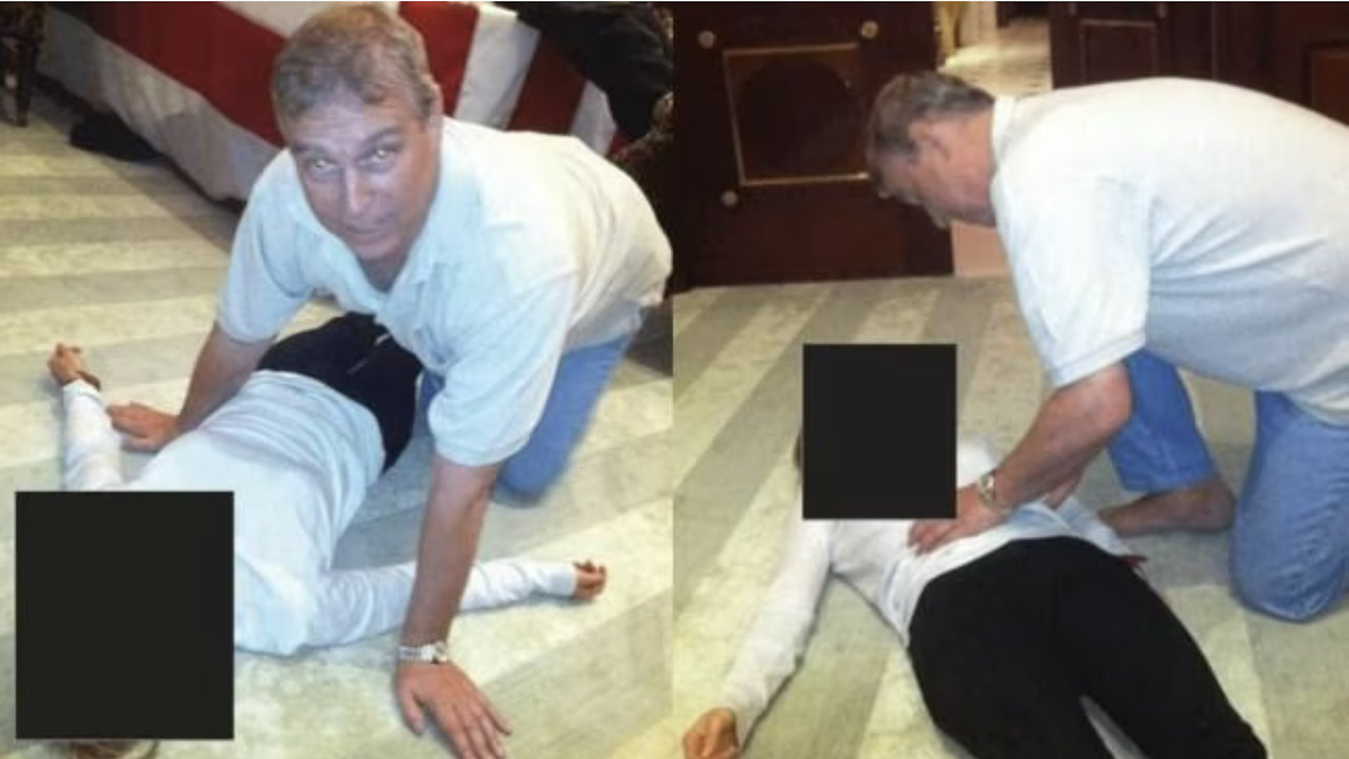 ↓ 在美国司法部公开的其他档桉中,出现安德鲁与一名身份不明、躺在地上女子的照片 ↓