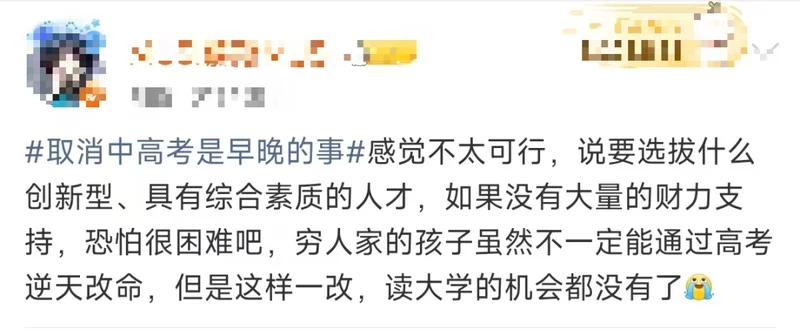 “取消高考很多寒门子弟很难出头”