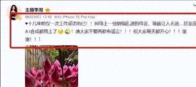 李湘的下场最为复杂。2008年,她以记者身份采访释永信,一次正常的国际礼仪亲手背动作,在2025年被翻出,慢放循环播放,并被AI技术合成了虚假的亲密合影。更甚者,谣言牵连到她未成年的女儿。 与此同时,她名下多家公司注销,这本是普通商业操作,却被串联成“销毁与释永信勾结的证据”。