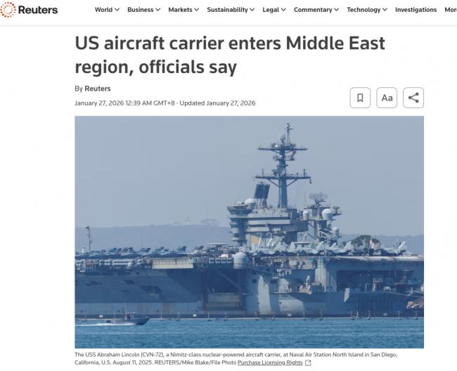 如今,历史仿佛重演。“林肯”号离开本应巡航的西太平洋火速驰援中东,其战略信号意义不言自明:美国准备好在必要时军事干预伊朗。