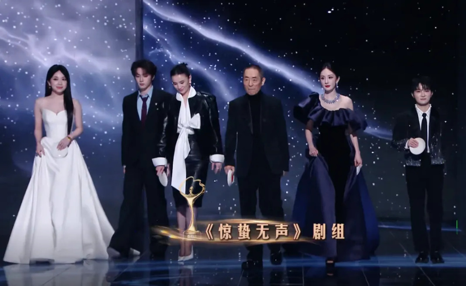 杨幂带着作品走红毯了!张艺谋导演的电影《惊蛰无声》定档春节上映,整个剧组压轴走红毯,杨幂站在张艺谋身边,待遇挺不错的。