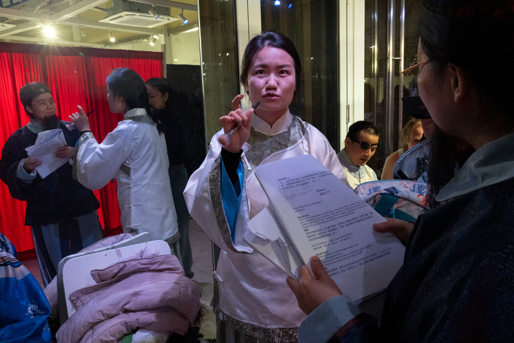 30岁的王梦是上海舞台上崭露头角的新星,同时也是一名教师。她坚称自己对政治毫无兴趣,扮演伊阿古的妻子爱米利娅,纯粹只是获得了“巨大的个人满足感”。(这个角色起初参与了丈夫针对奥赛罗的谎言阴谋,最终却为真相殉身。)王梦说,爱米利娅的形象证明了“女性可以独立自主”“不必永远服从男性”。
