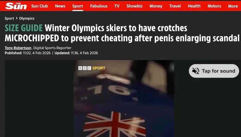 冬奥要在裤裆里放芯片?太阳报