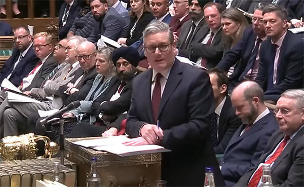 当地时间2月4日,斯塔默在英国议会回答议员的质询 视频截图