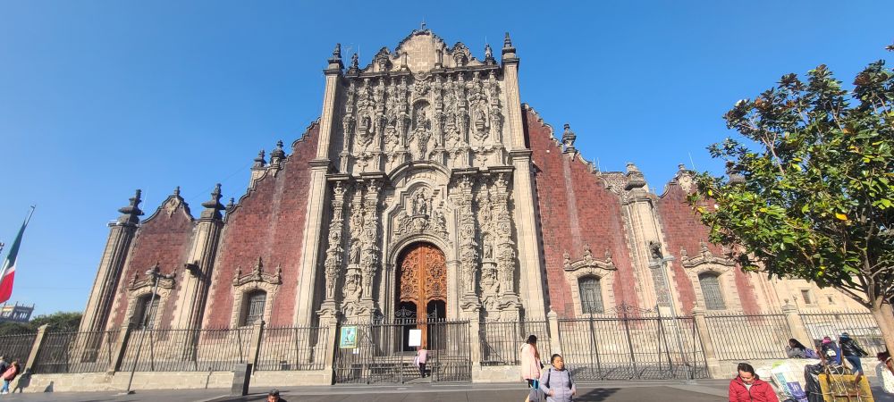 女友是做攻略的高手,用Google Map先把感兴趣的地方save as favorite,然后看着map的路线外加各景点的开门时间计划出路线,可以有效节省路上的时间。我们在墨西哥城要么靠11号(两条腿),要么打Uber,感觉很方便。昨晚check-in的时候,前台小姐姐就告诉我们第二天早上九点是有老城免费walking tour(大约三小时)。我们想开始的时候参加一个walking tour也不错,这样可以在本地人的带领下先对老城有个大概了解,而且讲解也会让我们多知道一点本地的风俗民情,于是第二天早上7点起床,吃过酒店包的早餐之后(酒店早餐不是自助形式,而是点餐,可以点多份,先上水果和酸奶,咖啡或茶,然后自己点正式早餐,做的色香味俱全),就准时9点到前台等侯。女导游大约迟到了15分钟,不过最后结束时也12点多了,3小时是肯定保证的了。