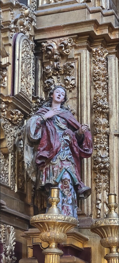 黑耶稣的宽恕祭坛。关于黑耶稣,导游说有个故事:一位神父被投毒,害他的人把毒药涂在耶稣像的脚上,因为知道这个神父每晚会来轻吻耶稣的脚。这天晚上神父又要吻脚,耶稣像就特意把脚抬起,不让神父亲吻,而且吸走了毒药,神像从此变为黑色,象征耶稣为人类承担痛苦。我们也可以看到这个黑耶稣雕像的脚是抬起来的。