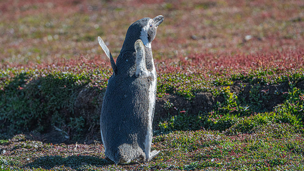 13)在岛上看到的另一种企鹅,麦哲伦企鹅(Magellanic Penguin)。这种企鹅是挖洞住地下的企鹅。每年它们都会长途迁徙。但雌雄通常分开迁徙。雌企鹅会跑的更远。但到了繁殖季节它们会分别返回繁殖地的同一洞穴,在老宅里夫妻俩再次团圆。这也为它们赢得了忠诚的一夫一妻的好名声