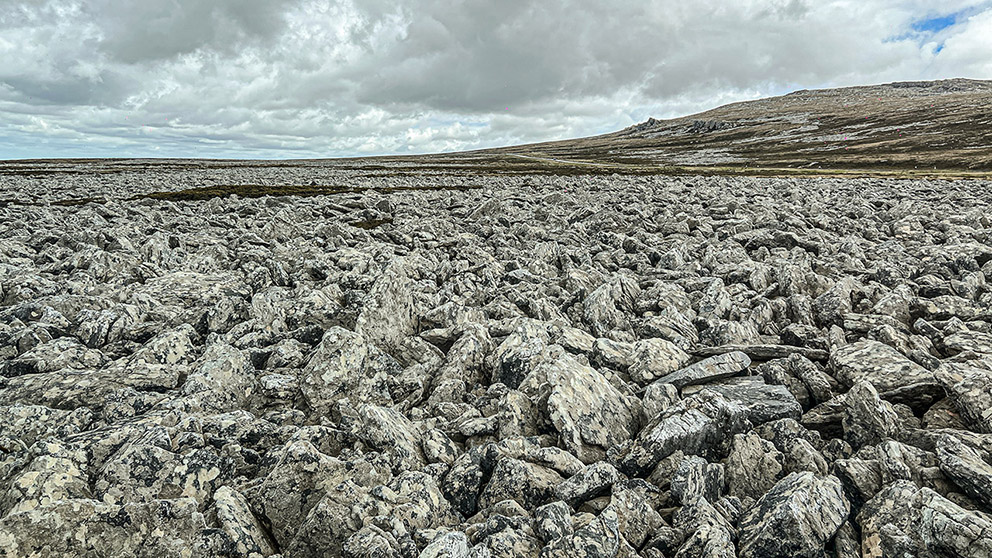 6)我们去了东福克兰岛的Bluff Cove。在那里看到了一些王企鹅。但数量有限。倒是在那附近看到的大面积的石河流(stone runs)让人惊艳。这种大规模的石河流约成型在15000年前的冰河时代。由长时间的冰缘冻融,岩石风化和坡面物质移动的共同作用形成。是比较罕见的标志性的冰缘冷气候地貌